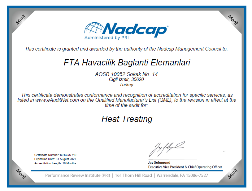 Nadcap Approval Chemical Processes (Dry Film Lubrication, Ti Cleaning and Passivation)